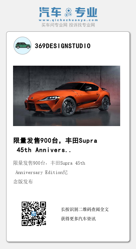 为纪念Supra(图片|配置|询价)数十年车型历史,丰田汽车(Toyota)近日发布了基于Supra开发的Supra 45th Anniversary Edition纪念版,新车将会限量发售900台。