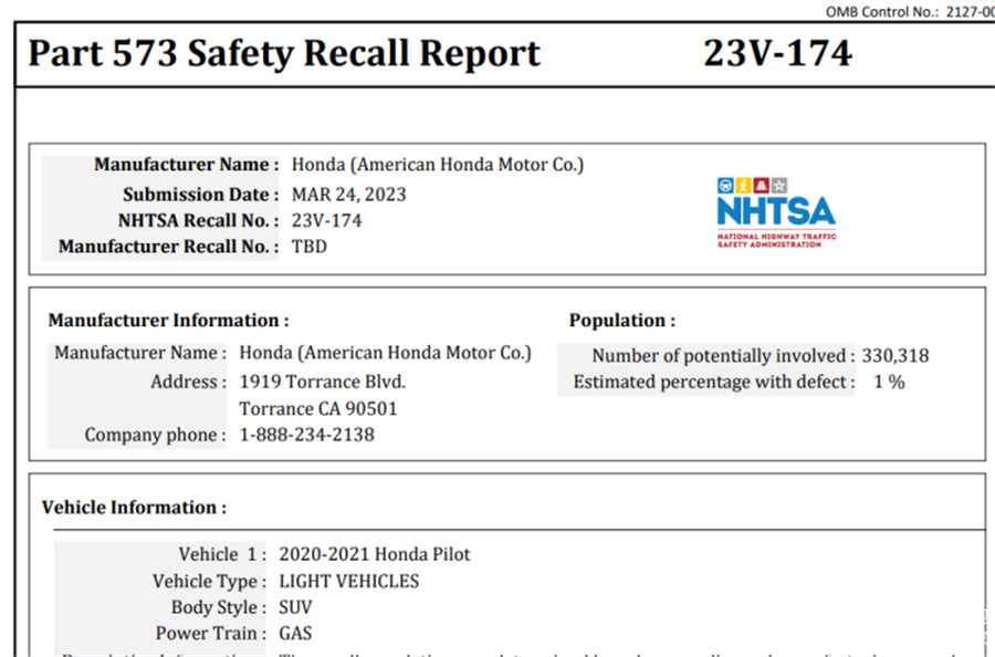 有意思的是,本田美国在2021年7月出厂的更换了旗下车型的加热垫和胶带。当时是为了解决后视镜振动的问题。这个变更也解决了由于粘合剂松动而导致后视镜从车辆上脱落的问题。所以,2021年7月之后的车辆并没有后视镜松脱的风险。不在召回之列。