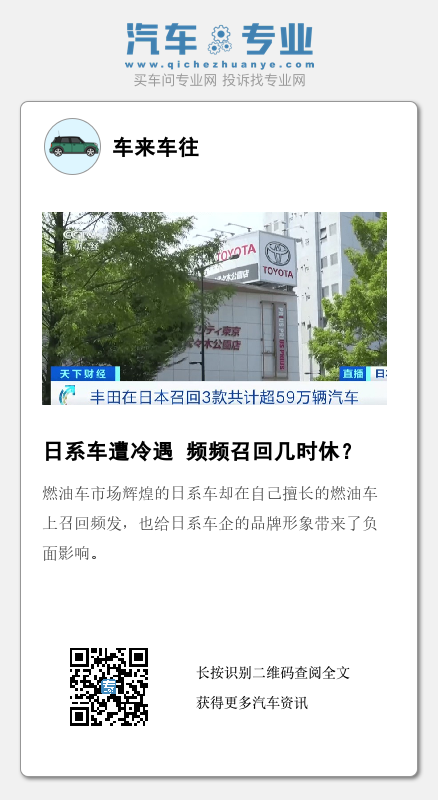 日前,日本丰田汽车公司宣布在日本召回3款车型共计超59万辆汽车,召回原因是因车辆前轮缓冲装置存在问题,长期在凹凸不平的路面上行驶可能出现裂纹,严重时会在行驶过程中断裂,影响车辆行驶的稳定性。据了解,到目前为止,已经收到了31份相关问题报告,其中4份涉及车辆行驶稳定性不佳,所幸没有引发交通事故。