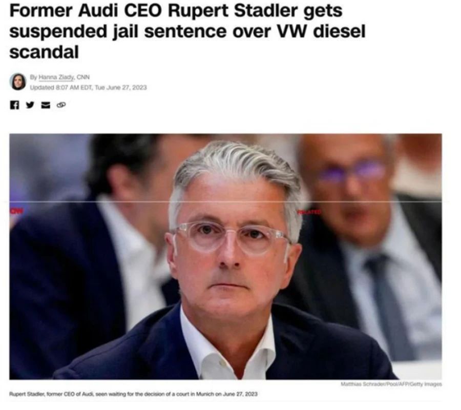 据外媒报道,奥迪前首席执行官鲁珀特•施泰德因“柴油门”中的欺诈行为,被德国慕尼黑法院判处21个月缓刑,这也是第一位因柴油丑闻欺诈而被判刑的前大众集团董事会成员。