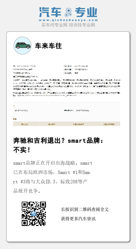 对此,smart品牌发布关于"奔驰和吉利退出smart股东行列不实信息的声明,强调目前,smart品牌全球公司仍是由梅赛德斯-奔驰和吉利按同等股比共同持有的合资公司。并表示,为满足企业发展需要,把握市场发展机遇,smart会灵活调整战略部署。