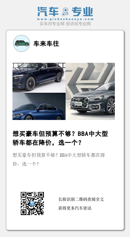 小结:豪车大幅降价,这在两年前并不常见,它从侧面反映出中国汽车市场竞争的激烈程度。不过一个品牌的影响力并非短时间内可以大幅提升,在新能源车型完全取代燃油车之前,奔驰E级、宝马5系、奥迪A6L等车型通过降价等手段,依然是高端市场的“顶流”。