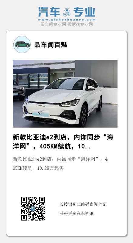 那么,各位看官朋友们,指导价在10.28万-10.98万元之间的新款比亚迪e2,会让你感兴趣吗?