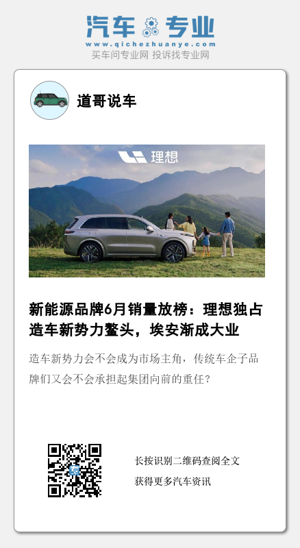 而传统车企的新能源子品牌中,广汽埃安是毫无疑问的大佬,6月4.5万的销量已经有了让其冲击传统车企地位的底气,极氪则紧随其后,同样成为了月销破万的新秀,欧拉这样的老牌品牌自然也保持了万辆月销的地位,而其余几家虽没破万,但成绩总归还算不错,深蓝6月销量已经逼近万辆,岚图、魏牌等表现稳定……