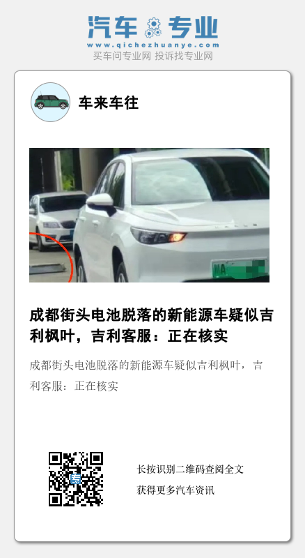 天眼查App显示,浙江豪情汽车制造有限公司系吉利汽车集团旗下企业。上述网约车司机告诉记者:“电池脱离(原因),可能是换电池后没有扣紧。”