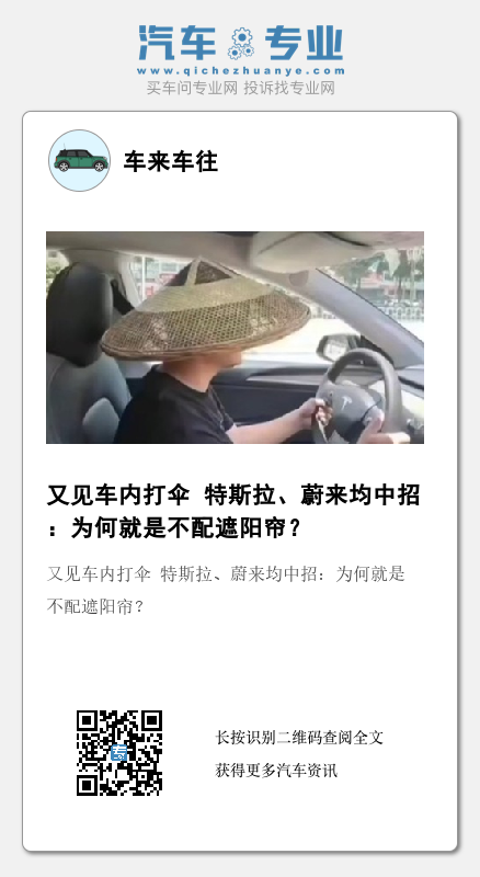 无独有偶,有广东女子放假回家时,打网约车打到了一辆广汽埃安的网约车,因为太晒只能在车里撑伞,吐槽称:“能不能人性化一点这车。”