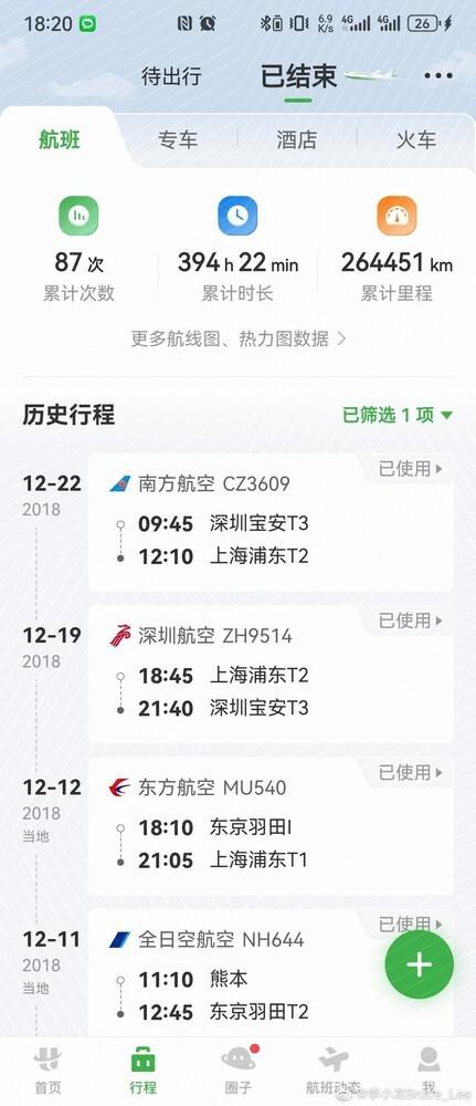 华为李小龙2018年民航累计里程