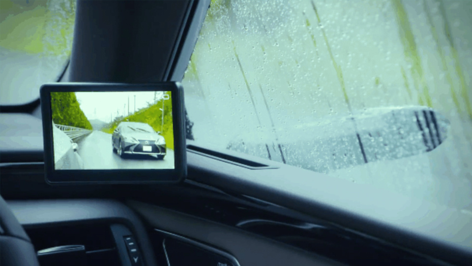 此前雷克萨斯展示过ES使用电子后视镜的画面,外面雨雾天气,车内显示屏幕丝毫不受影响也能够正常看清路面情况。
