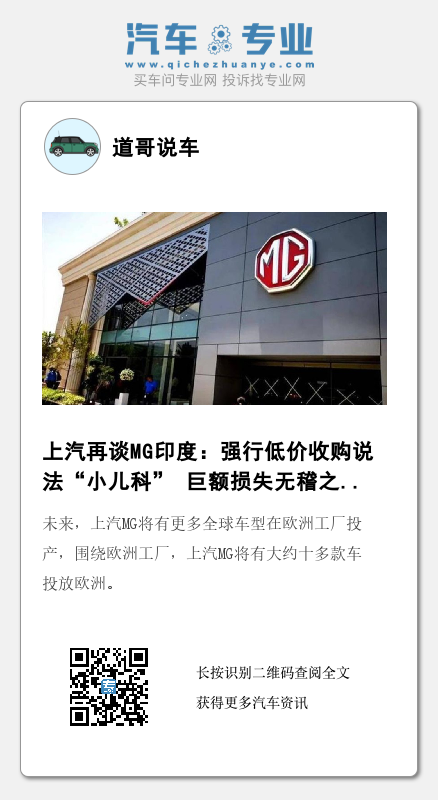 7月4日,在上汽集团上半年海外业务沟通会上,上汽集团总裁助理、上汽国际总经理余德首度公开回应了此前“MG印度公司被当地强行低价收购股份、丧失控制权”的传言。余德表示,这种说法是“小儿科”,而一些传言宣称有100亿美元的巨额损失,实际上市场销售体量也就10万辆的规模,根本到不了百亿美元,也完全是无稽之谈。