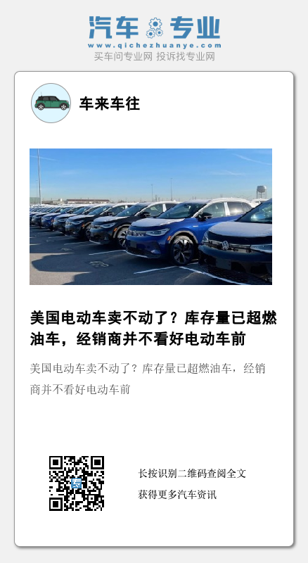 尽管电动汽车在经销商车库中停留的时间更长,但与燃油车对比的数据表明,电动汽车销售增长速度比燃油车更快,这意味着它们仍在不断扩大市场份额,如2023年第一季度仅电动车就已占据新车销量的7%。而导致电动汽车在经销商库存中停留时间更长的因素之一,可能是电动汽车技术的发展速度已经不那么快了。且随着二手车市场上电动车数量的增长,使得新车的库存周期也随之延长。