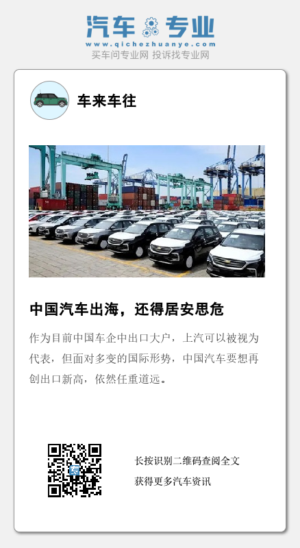 作为目前中国车企中出口大户,上汽可以被视为代表,但面对多变的国际形势,中国汽车要想再创出口新高,依然任重道远。