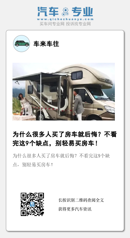 所以说真想买个房车,首先得问问自己,有这个闲钱吗?有这个闲工夫吗?有足够的动手能力吗?真有开着房车去旅行的闲情雅致吗?千万别因为伪需求和商家的一顿忽悠冲动下单,到时候后悔都来不及。