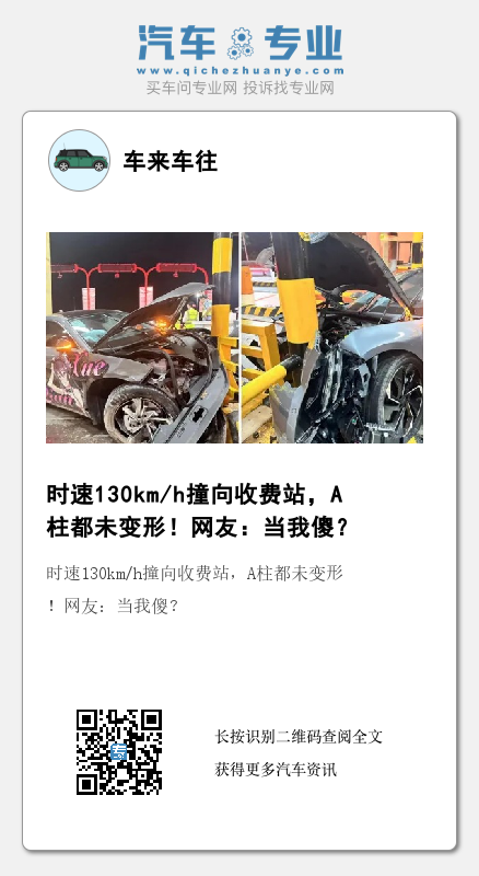 根据这位发帖网友的描述,这辆极氪001以130km/h的速度,撞向了高速收费站限高的柱子上,车辆连A柱都没有发生变形!不过,但凡有点汽车常识或者物理常识的人,都不可能会相信这个数据!