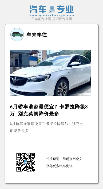 虽然,我国对于国六b排放标准当中的“适当放缓”问题,的确解决了一些车企的燃眉之急,但是,毕竟这只是一部分,还有更多的车企是必须要在7月1日之前消化掉所有不符合排放标准库存车的。怎么办?那就是降价啊,于是6月份,要说轿车降价谁家强?还是要看上海地区别克英朗。