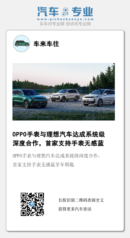 2021年8月,OPPO还首次为OPPO Watch 2用户带来手表控车功能,抬起手腕即可查看车辆状态,实现车辆远程控制;2022年6月,OPPO数字车钥匙又完成了与理想L9的适配。