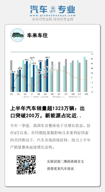 今年上半年,新能源汽车和汽车出口的良好表现有效拉动了市场增长,且伴随政策效应持续显现,汽车市场消费潜力将被进一步释放,有助于推动行业全年实现稳定增长。