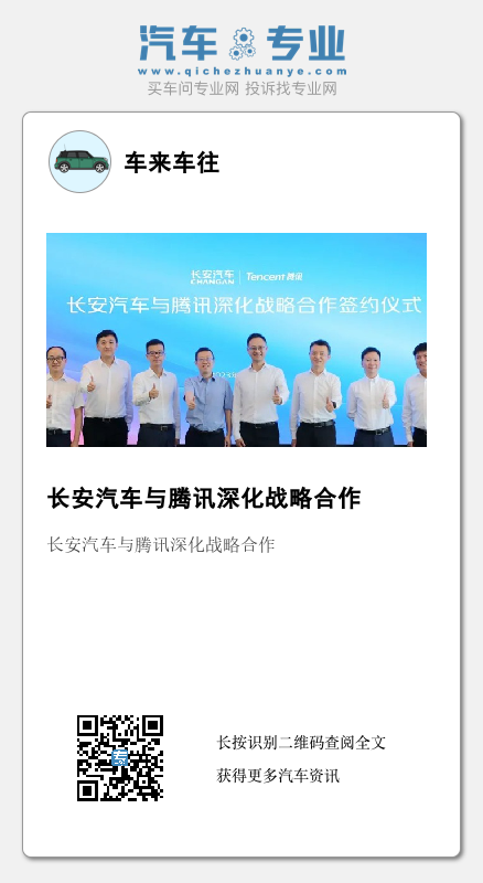 7月11日,长安汽车与腾讯签署深化战略合作协议。双方将在此前合作基础之上,围绕智能座舱、导航及地图、自动驾驶、海外生态、企业数字化转型等多领域加强合作,助力长安汽车加速向智能低碳出行科技公司转型。