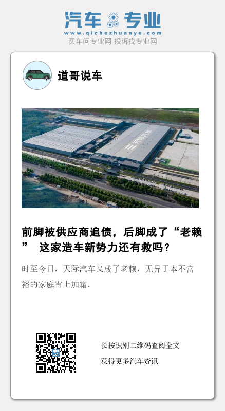 时至今日,天际汽车又成了老赖,无异于本不富裕的家庭雪上加霜。而谁又能来救救这家造车新势力呢?