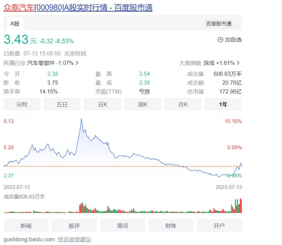 当然,也许这些都不影响众泰汽车在股市中的表现,毕竟这是一个名副其实的“妖股”,从当年的重整过程中,到现在都是。