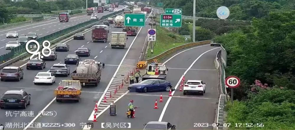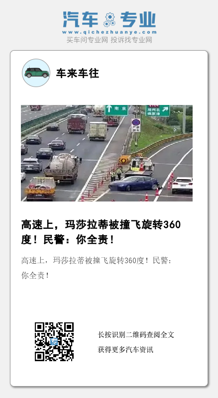 7月7日17时27分左右,湖州高速交警支队五大队指挥中心民警在视频巡查的过程中发现,G25长深高速2225公里300米处,一辆蓝色玛莎拉蒂小车从第一车道连续变更两条车道后准备开下高速,后方第三车道内大货车躲避不及与其发生追尾,由于惯性较大小车瞬间被撞飞接近360度甩尾,事故现场一片狼藉。