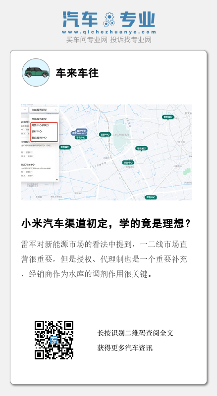 AC汽车曾在文章《想拿小米汽车授权服务,先对标蔚来和华为》中表示,小米汽车的渠道将会借鉴华为问界和蔚来,但是就目前的信息来看,小米汽车的渠道模式或许与理想汽车更为相像。