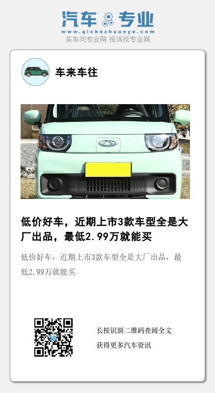 今天我们就来盘点近期10万内上市的低价好车,它们都是大厂出品,品质有保障,纯市区代步、家用型都有,最低售价仅为2.99万,话不多说,一起来看看。