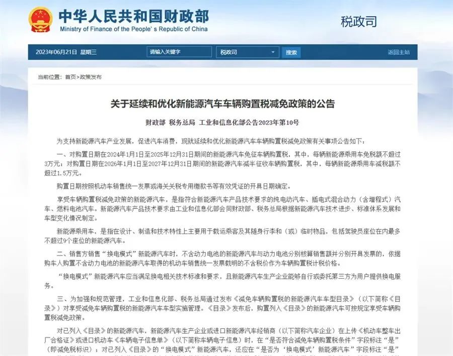2022年5月31日,财政部、税务总局发布《关于减征部分乘用车车辆购置税的公告》,对购置日期在2022年6月1日至2022年12月31日期间内且单车价格(不含增值税)不超过30万元的2.0升及以下排量乘用车,减半征收车辆购置税。