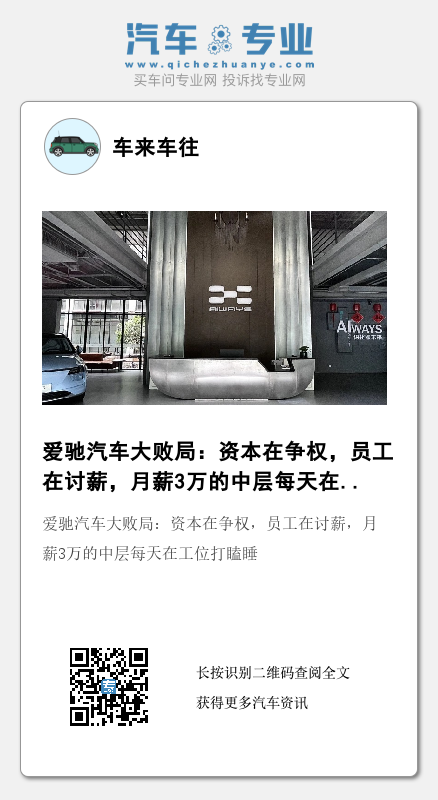 “爱驰势必会成为中国汽车行业发展过程中的牺牲品。”在张翔看来,爱驰几经更迭,既没有创新的产品和专利,也没有强大的领导团队,已经失去了战斗力,和向市场证明的机会。