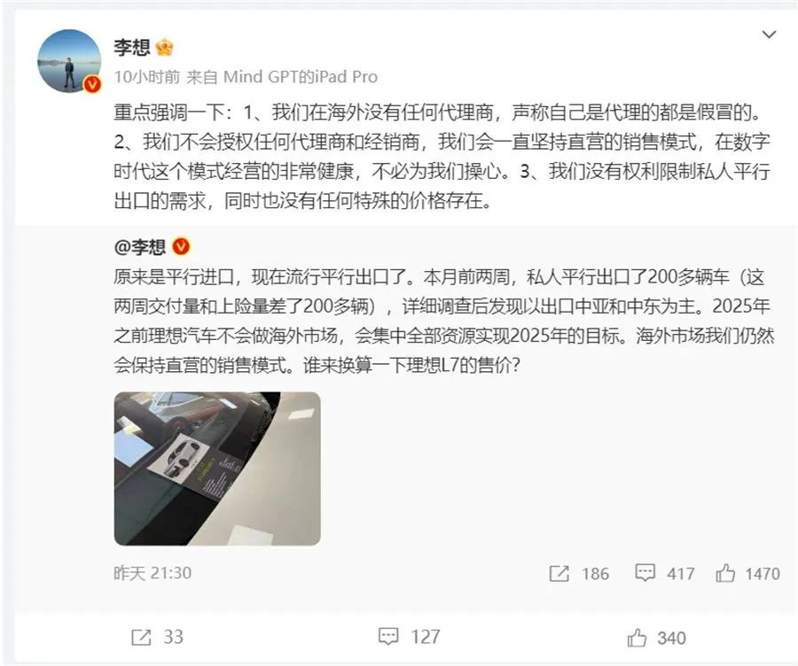 更何况,李想只说了2025年之前不会做海外市场,并没有说之后不会。其甚至连出海怎么做都想好了,“我们不会授权任何代理商和经销商,我们会一直坚持直营的销售模式,在数字时代这个模式经营的非常健康,不必为我们操心”。