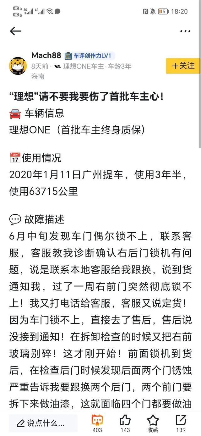 日前,理想ONE车主Mach88发布了题为《"理想"请不要我要伤了首批车主心!》的长贴。