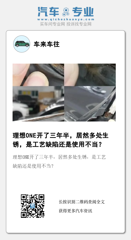 该车主呼吁理想汽车官方:解决好工厂生产工艺缺陷!检查同时期生产车辆锈蚀情况,抓紧制定解决方案!