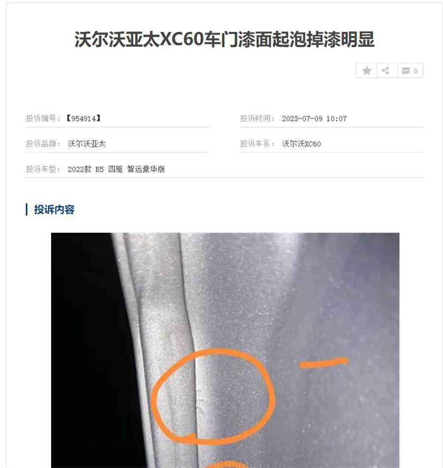 “发现主驾驶车门边漆面鼓泡会掉,内部生锈。400客服不作为,厂家不正面回复产生原因,踢皮球给4S店,超过3年就不在质保范围了。还不断在扩大”。《财圈社&道哥说车》编辑注意到,今年7月,又有车主在车质网投诉了沃尔沃车门爆漆的问题。