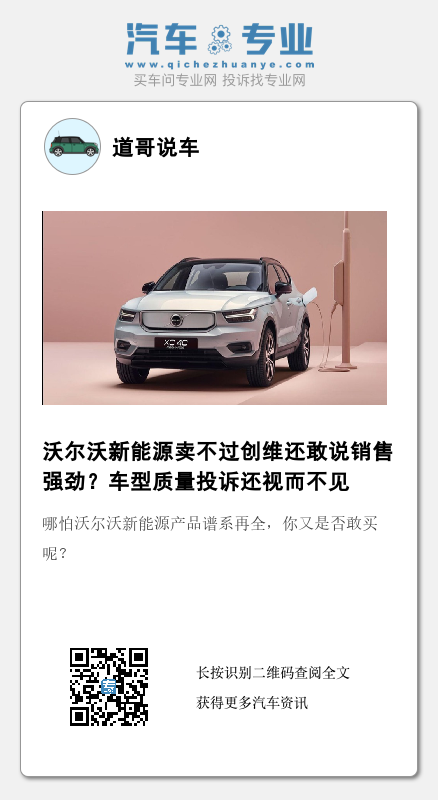 事实上,作为工业产品,没有品牌敢说自己的产品绝对不会出问题,出现投诉也是比较正常的事情。但不正常的是,真的有品牌根本就不理会消费者的声音。哪怕沃尔沃新能源产品谱系再全,你又是否敢买呢?