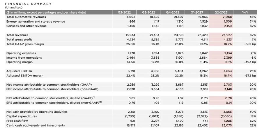 而特斯拉“以价换量”的确成效斐然,在交付量上,特斯拉第二季度也创下了新的历史纪录,二季度交付46.61万辆电动车,同比增长约83%。与此同时,据财报显示,特斯拉今年第二季度营收为249.27亿美元,市场预期为245.1亿美元,同比增长47%,再创新高;净利润(GAAP)为27.03亿美元,同比增长20%,高于市场预期的23.9亿美元。