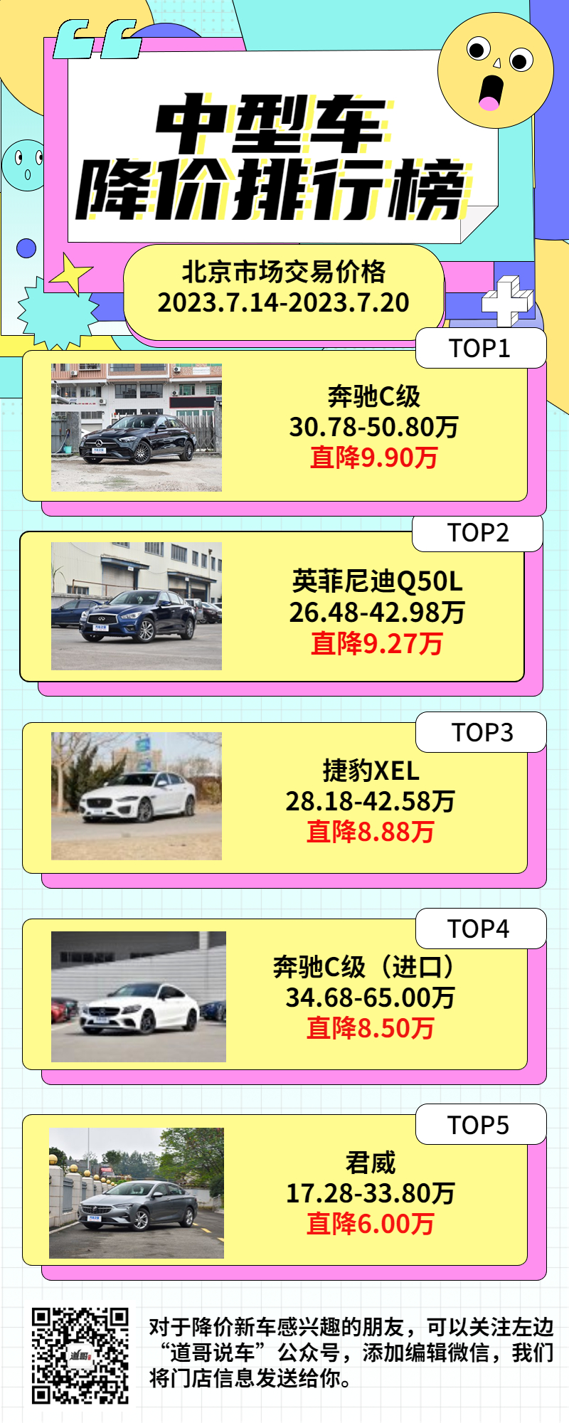 小型车方面,新入降幅前五榜单的MINI CLUBMAN直降1.2万元,LIFE、Polo、威驰、威驰FS这几款车型的降幅与上周一致;中型车方面,相较上周,捷豹XEL再度优惠5千多元,君威再度优惠4千多元;中大型车方面,捷豹XFL还是排在降幅榜的第一位,较上周再度优惠1千元,其余几款车型的排位及降幅和上周一样,此外,奔驰E级(进口)的降幅也达到了10万元。