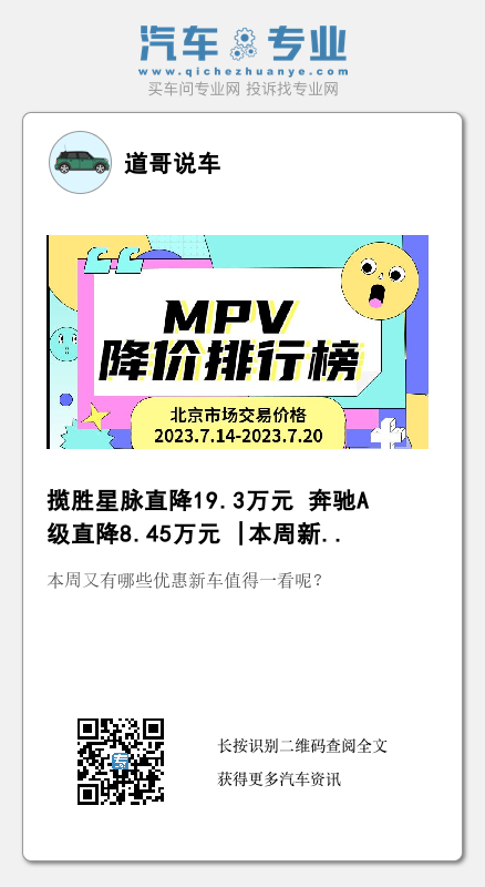 【文/财圈社&道哥说车 浅浅】进入三伏天,天气潮湿而又闷热,无论是上班途中还是外出闲逛,都想有一个能吹空调的驾乘工具,本周又有哪些优惠新车值得一看呢?