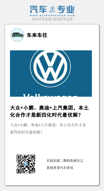 这一次与小鹏的合作,不仅是三电技术的探讨,小鹏SEPA2.0架构以及智能驾驶、智能网联均处在一线水准,而智能也正是目前大众车型所缺失的。所以,大众与本土化品牌的合作也是必然趋势,小鹏也凭借着自身的实力得到大众集团的认可。