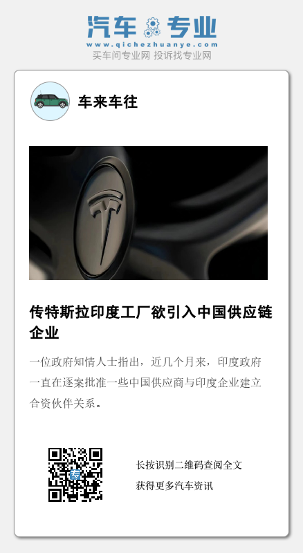 一名印度官员表示,对于特斯拉来说,将印度当地企业和中国企业结合起来可能对其有利。“特斯拉一直要求为其中国供应商建立一个独立的生态系统……如果有印度合资伙伴,这些要求可以根据具体情况予以批准。”