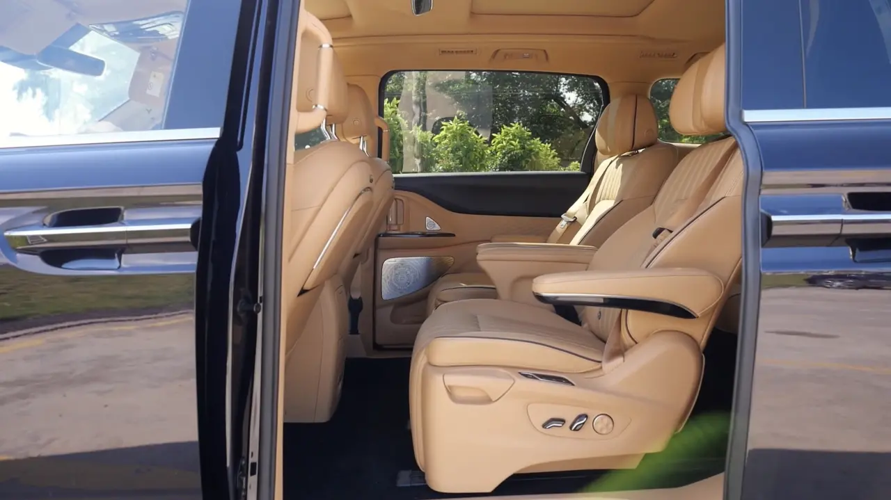 一台“纯正”的MPV,这是在前面我们给腾势D9的产品,所以一些MPV功能性的东西你是不用担心的,双电滑门、独立座椅、电动调节,B柱扶手,这些豪华MPV“标配”的功能它都有。