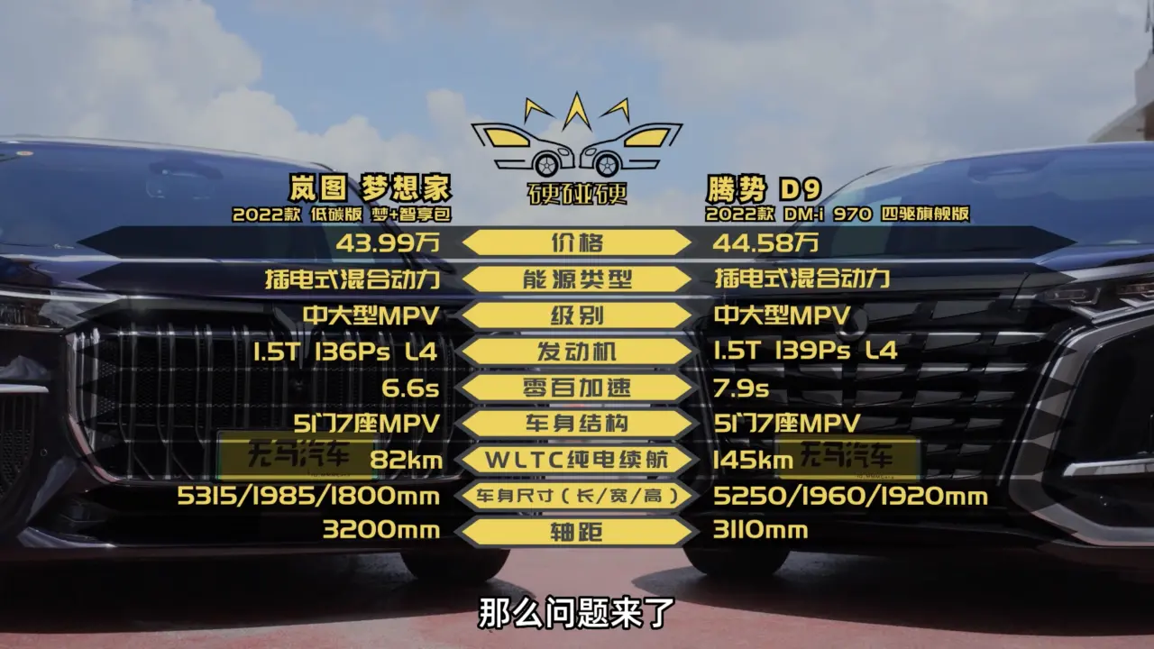 梦想家混动版和腾势D9 DM-i版,搭载的都是1.5T四缸涡轮增压发动机,发动机的参数也非常相近,但两台车的动力表现却有相当的差距,从两项数据的对比就能看出:一是零百加速,梦想家混动版只需6.6秒,腾势D9 DM-i版最快也要去到7.9秒;二是最高车速,梦想家混动版能去到200,但腾势D9 DM-i版的极限只有180。