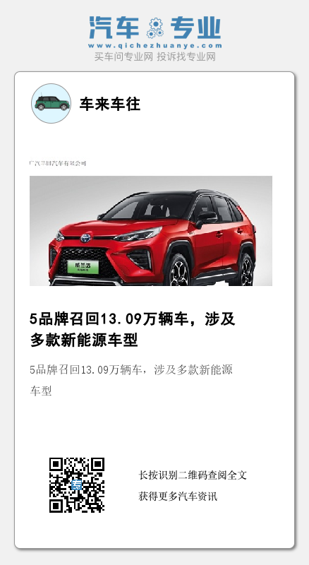 据国家市场监督管理总局8月4日发布的4起召回公告显示,大众、奔驰、丰田、雷克萨斯、特斯拉5品牌将共计召回130948辆乘用车。其中,丰田、雷克萨斯、特斯拉召回的全部为新能源车型,奔驰也召回了部分电动车。