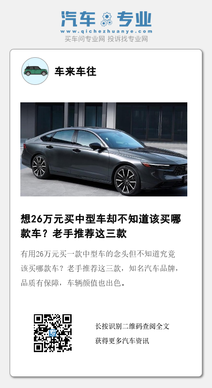 有用26万元买一款中型车的念头但不知道究竟该买哪款车?老手推荐这三款,知名汽车品牌,品质有保障,车辆颜值也出色。