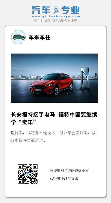 此次电马运营主体转为长安福特,官方也是想快速拓展电马的销售渠道。这是福特在中国市场的重要战略转向,对于长安福特来说,一定是利大于弊的。不仅能助力长安福特新能源布局进程的加速,而且也实现了福特电马在中国业务的产供销一体化。长安福特的300家经销商,覆盖70个城市,对于电马的销量也会产生正向助力。