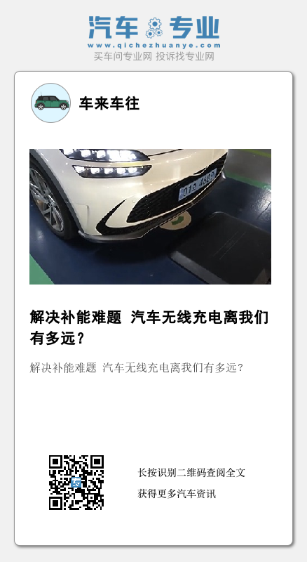 安全性问题。正如上文提到的,无线充电的工作原理是靠电磁波来传递能量,在这个过程中是一定会产生电磁辐射的,长时间使用对人体是否有伤害是用户比较担心的问题。现阶段国家对于纯电动汽车无线充电是有国家标准的,但都属于推荐标准而非强制性标准。另外,目前的无线充电设备的功率还都比较小,后续一旦出现大功率无线充电设备,电磁辐射会不会更强,还是个未知数。还有就是随着充电功率的提升,电池的发热量势必增大,同样存在一定安全隐患。当然,随着无线充电技术不断进步,相应的国家标准和法规也将逐步完善,来保障用户的用车安全。