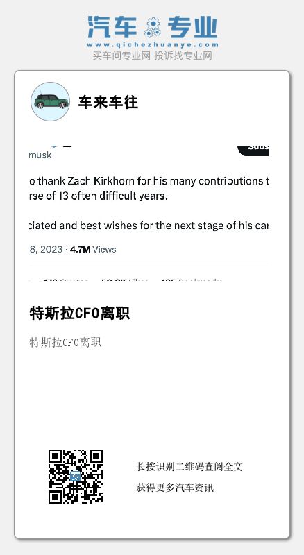 据彭博社报道,特斯拉原首席财务官Zachary Kirkhorn离职,引发外界对该公司高层继任问题的新质疑。