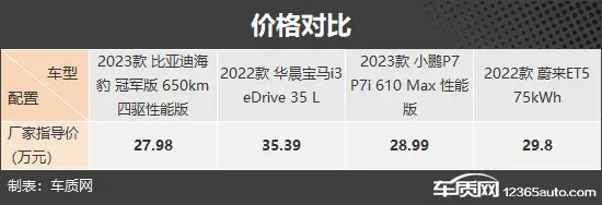 此次推荐的四款车型分别是比亚迪海豹(图片|配置|询价)、宝马i3(图片|配置|询价)、小鹏P7(图片|配置|询价)以及蔚来ET5,其中比亚迪海豹和宝马i3均出自传统车企,小鹏P7和蔚来ET5则均出自造车新势力。需要说明的是,虽然此次对比的2022款宝马i3 eDrive 35 L车型的指导价超过了35万,与其它车型价格拉开距离,但结合其现阶段较大的终端优惠幅度,与其它三款车型基本处于同一价格区间,具备一定可比性。