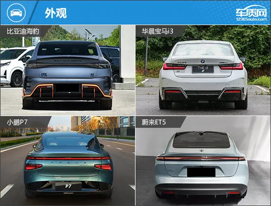 车尾最具亮点的莫过于比亚迪海豹、小鹏P7以及蔚来ET5上的贯穿式尾灯,点亮后极具科技感。不过相较之下,宝马i3虽然并未采用贯穿式尾灯,但标志性的尾部能够让人一眼辨识出这是台“BMW 3系”,可见传承的影响力之大。
