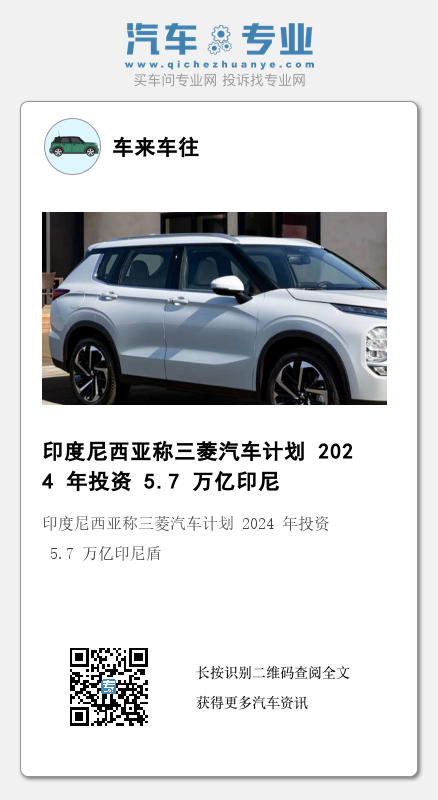日本汽车制造商三菱汽车宣布将在 2024 年投资 5.7 万亿印尼盾(IT之家注:约合 27.05 亿元人民币),以扩大其在印度尼西亚的生产能力。