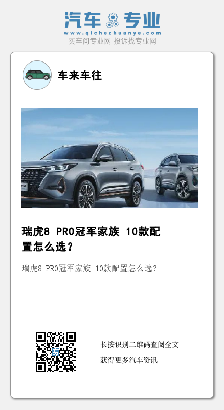 此次瑞虎8 PRO冠军版的上市,虽然配置众多,但每个配置定位均十分清晰。如果你确定好需求,选择到适合自己配置的车型并不是难事。例如选车君认为,1.6T、8AT、四驱、插电混动,四个关键词将成为购车的重要选项。所以,看到这里,你能选出心仪的配置了吗?