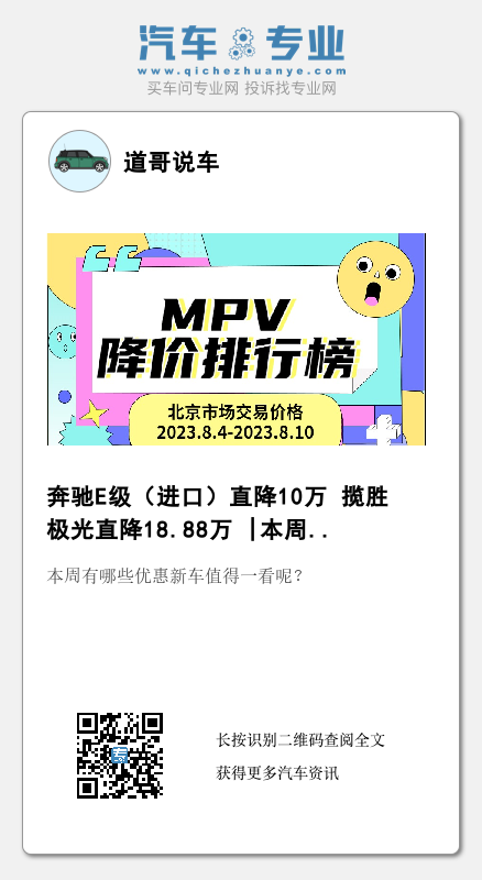 【文/财圈社&道哥说车 浅浅】虽然立秋已过,但是暑气依然未消散,本周有哪些优惠新车值得一看呢?